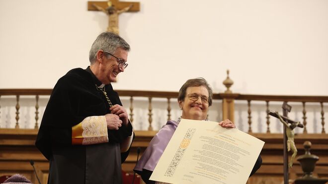 Para finalizar, Paz Quevedo concluyó que todas estas razones, “solamente esbozadas, que siempre han estado vinculadas a su permanente compromiso con los valores y fe cristiana de los que se enorgullece, y que son el pilar fundamental del ideario de nuestra Universidad, la hacen merecedora de este reconocimiento por el que se incorporará al claustro de personas insignes de la Universidad Pontificia de Salamanca”.