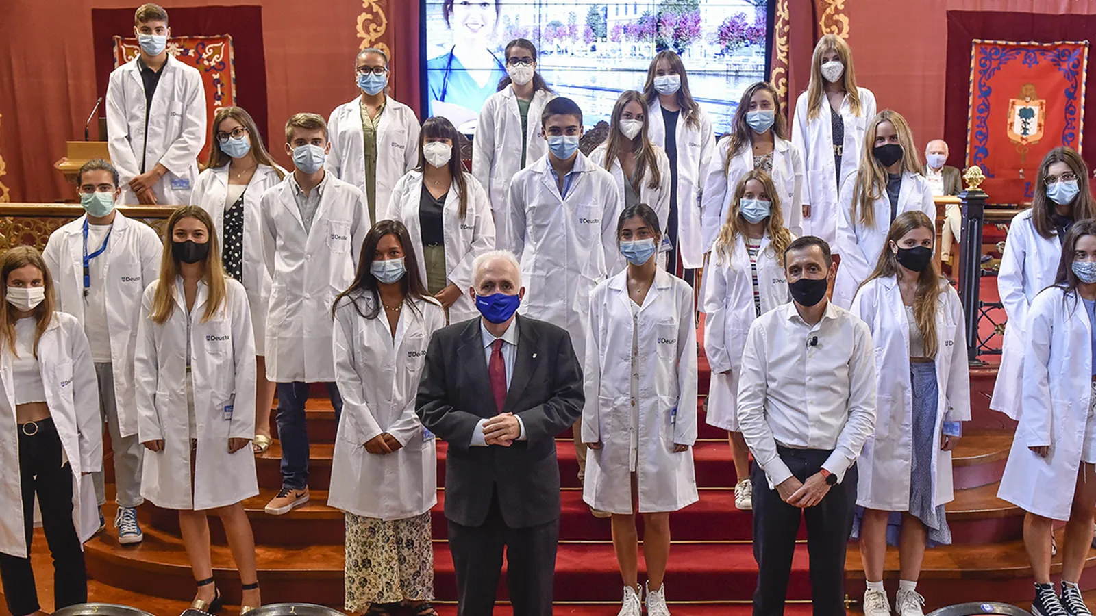 La presentación de los primeros 80 futuros médicos de Deusto se celebró el jueves 10 de septiembre. El grupo lo forman un 20% de chicos y un 80% chicas. El 73% proceden del País Vasco y el resto se distribuyen entre Asturias, Madrid, Navarra, Galicia, La Rioja, Cantabria, Aragón, Baleares, además de dos estudiantes de Inglaterra y Alemania. Estos estudiantes han superado un riguroso proceso de selección en el que participaron 588 candidatos.