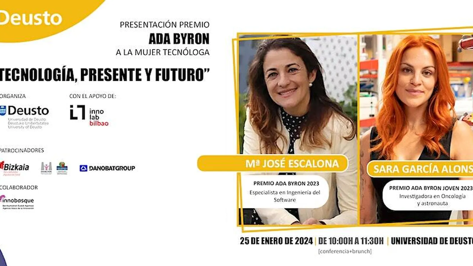 (Universidad de Deusto).- Con la asistencia como ponentes de las dos últimas ganadoras del premio Ada Byron, la Facultad de Ingeniería de la Universidad de Deusto presentará el jueves 25 de enero, a las 10:00 horas, la XI edición del Premio Ada Byron a la mujer tecnóloga. Este galardón, que se ha convertido en un referente nacional, visualiza el trabajo femenino en el campo científico, tecnológico y de ingeniería, al tiempo que busca fomentar entre las mujeres las vocaciones en el ámbito de I+D. El plazo de presentación de candidaturas para las dos categorías (general y menor de 35 años) finaliza el 26 de abril.