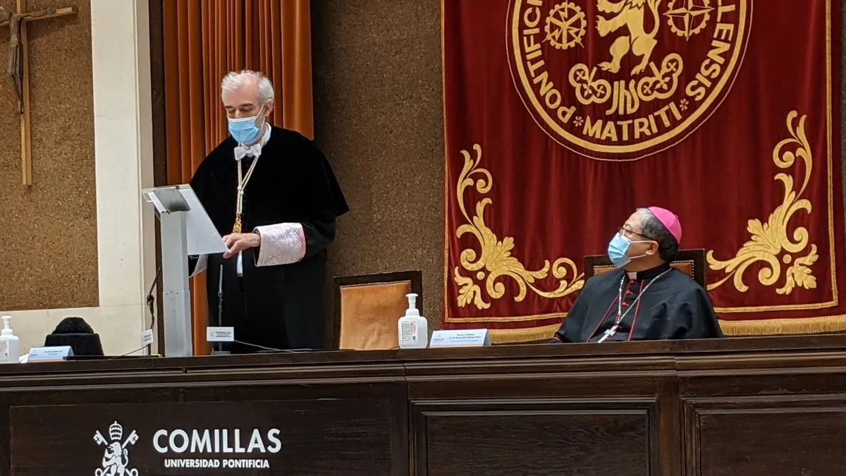 La normalidad busca imponerse, pese al impacto de la pandemia, en la vida de cada día. También en la Universidad. También, en Comillas, que esta tarde ha celebrado el acto de entrega de diplomas a licenciados, doctorados y demás personal del centro, con motivo de la festividad de Santo Tomás de Aquino. Una jornada que contó, por primera vez, con la presencia del nuevo nuncio, Bernardito Aúza.