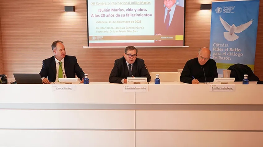 El vicerrector de Investigación de la UCV, José María Tormos Muñoz, ha destacado el valor del legado de Marías para la vida universitaria, recordando que la filosofía “no es un ejercicio abstracto, sino una búsqueda de la verdad que ilumina la existencia humana”. Asimismo, ha afirmado que una universidad católica “no debe limitarse a transmitir conocimientos técnicos, sino aspirar a formar personas capaces de integrar ciencia, técnica y humanidades en una visión completa del ser humano, abierta a la trascendencia”.