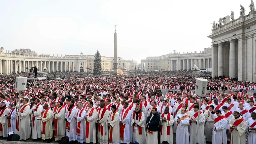 Miles de sacerdotes ocupaban buena parte del ala izquierda de la plaza, mientras los fieles se agolpaban en las sesenta mil sillas habilitadas, y por las calles aledañas. La mitad de la Via della Conzliazione estaba llena de gente, como ya sucediera en los tres días de capilla ardiente, con doscintos mil fieles que quisieron acercarse a despedir al pontífice alemán y que superaron las mejores expectativas del Vaticano.