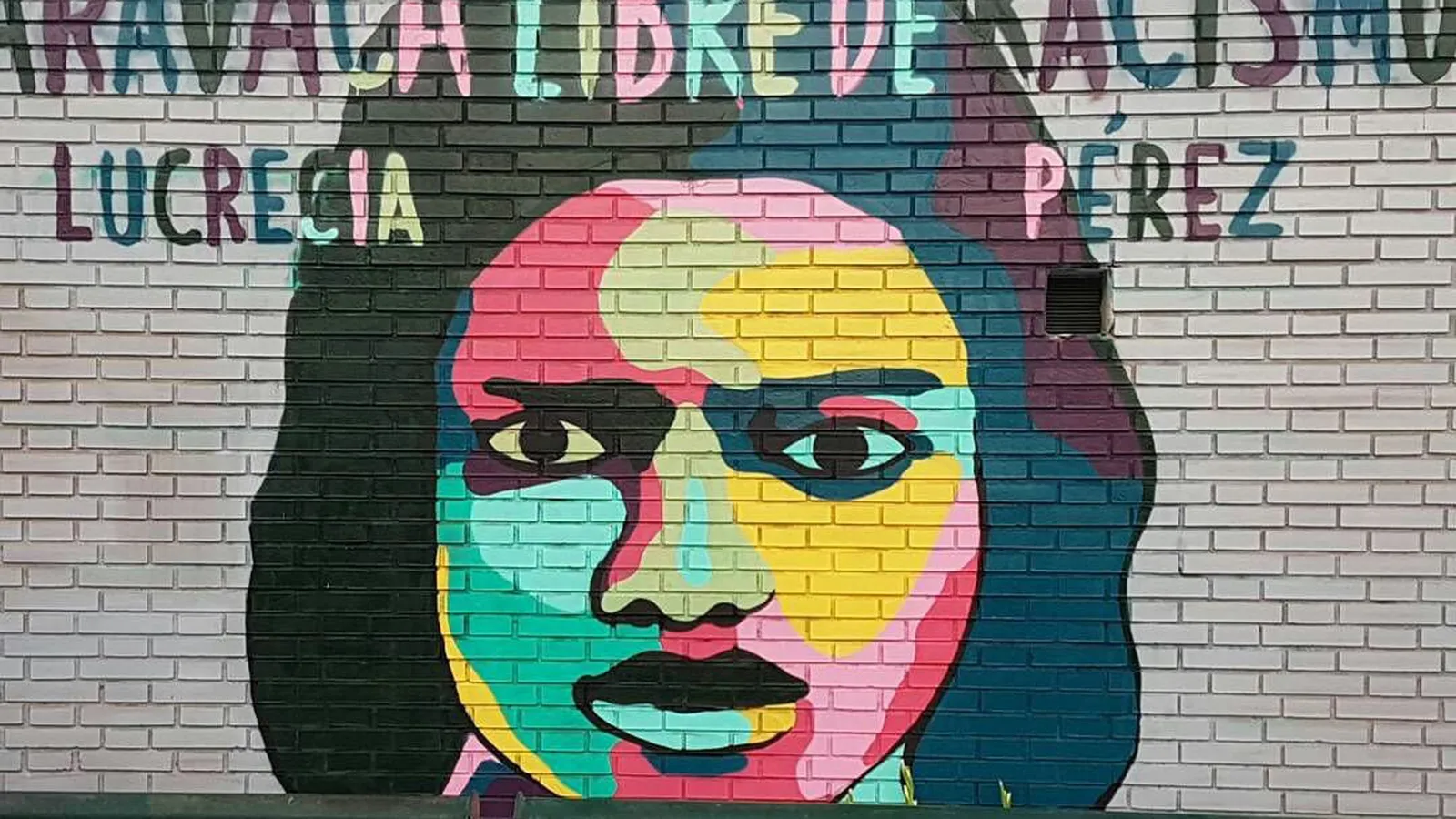 "En la plaza de Aravaca aparece la imagen de Lucrecia Pérez con este eslogan: 'Aravaca libre de racismo'… Este slogan no ha podido pronunciarse este año en Madrid porque el alcalde, José Luis Martínez Almeida, se ha negado a apoyar una declaración de homenaje a Lucrecia Pérez en el distrito de Moncloa-Aravaca"