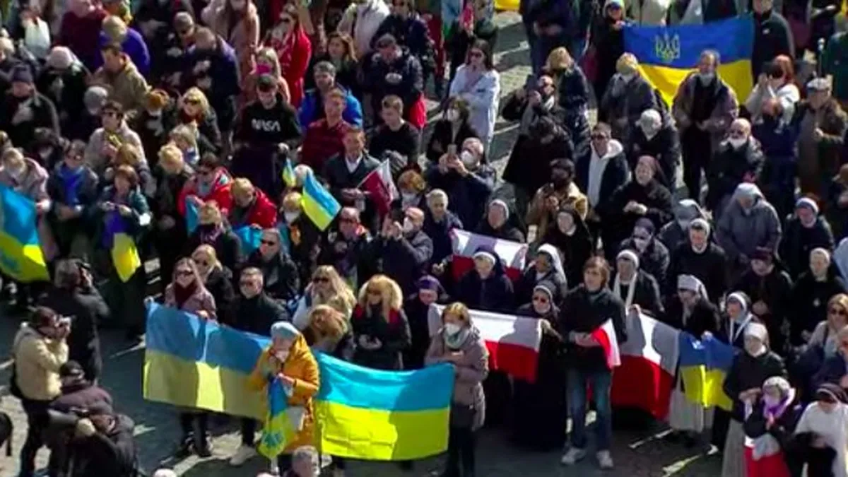 "En Ucrania corren ríos de sangre y de lágrimas. No se trata de una operación militar, sino de guerra, que siembra muerte, destrucción y miseria". Ante muchas banderas ucranianas (también rusas, también polacas...) en un soleado mediodía en la plaza de San Pedro, Francisco dijo sus palabras más rotundas, hasta la fecha, sobre la invasión de Rusia.