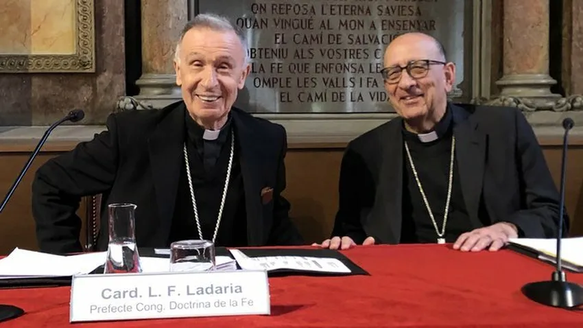 A continuación, abrió el turno de ponencias el cardenal Luis F. Ladaria, al que su presentador, el rector del Ateneo Universitario San Paciá, Armand Puig, definió como “un gran teólogo”, porque “más que un profesor, es un maestro”.