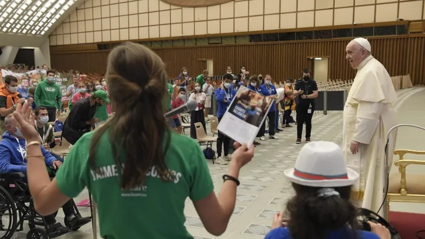 En el Aula Pablo VI -desde un escenario instalado a pocos metros de sus invitados-, el pontífice alentó la misión de la asociación, especialmente la de ir "a las afueras, que a menudo están llenas de soledad, tristeza, heridas internas y pérdida de las ganas de vivir”.