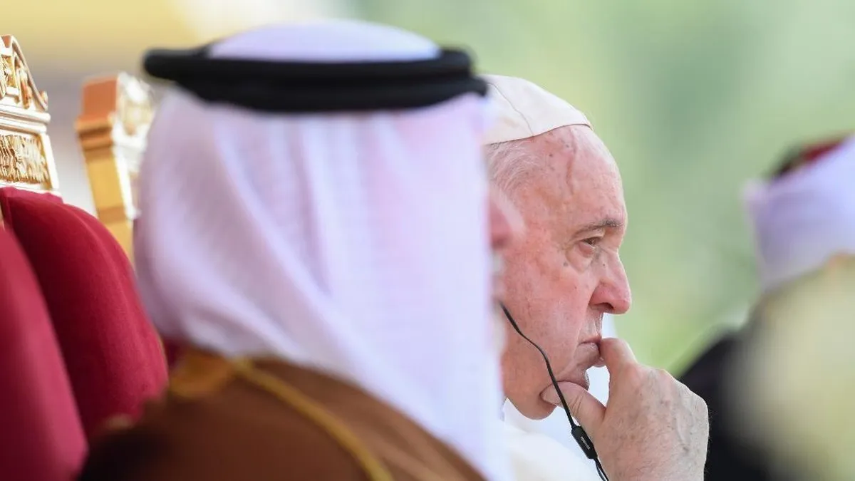 (Vatican News).- Aunque aquí en Awali, en la sede principal del rey de Bahréin, estamos muy lejos del sangriento conflicto que ha estallado en el corazón de la Europa cristiana, el Papa Francisco ha vuelto a pedir el fin de la guerra en Ucrania. La isla en el Golfo está lejos de Europa del Este, pero cerca de Yemen, otro de los "pedazos" de esa única Tercera Guerra Mundial de la que habla cada vez más a menudo y con creciente preocupación, el Sucesor de Pedro.