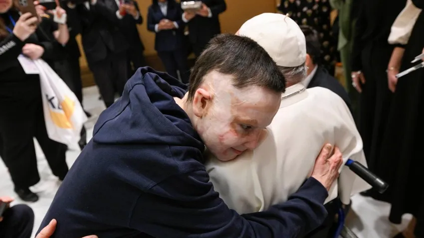 En Alemania, en el Hospital Universitario de Dresde, donde fue trasladado por un equipo de paramédicos, Román Oleksiv se sometió a operaciones tres veces por semana: extirpación de tejido no vital, reemplazo del tímpano, injertos de piel. En Dresde abrió lentamente los ojos y dio sus primeros pasos. Desde entonces, nunca ha parado, su historia también fue protagonista de un episodio, Children of War , de la serie Ucrania en llamas. Y desde Ucrania, Román volvió a Roma y con su sola presencia, con su misma vida y con la espontaneidad de arrojarse al cuello del Papa devuelve la esperanza a muchos de sus coetáneos que todavía son víctimas de lo que el Papa, esta mañana en la Cumbre, denunció como “crimen de guerra”.