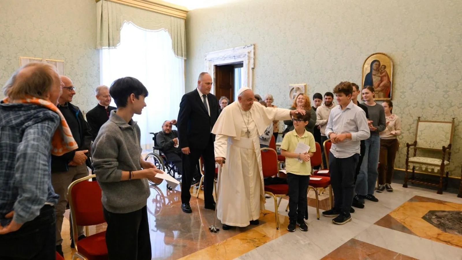 En su breve saludo, Francisco nos exhortó a “amarnos unos a otros como Él nos ha amado” y a dar gracias a Dios “por el don de su amor, que nos llega también a través de las personas buenas que nos rodean”.