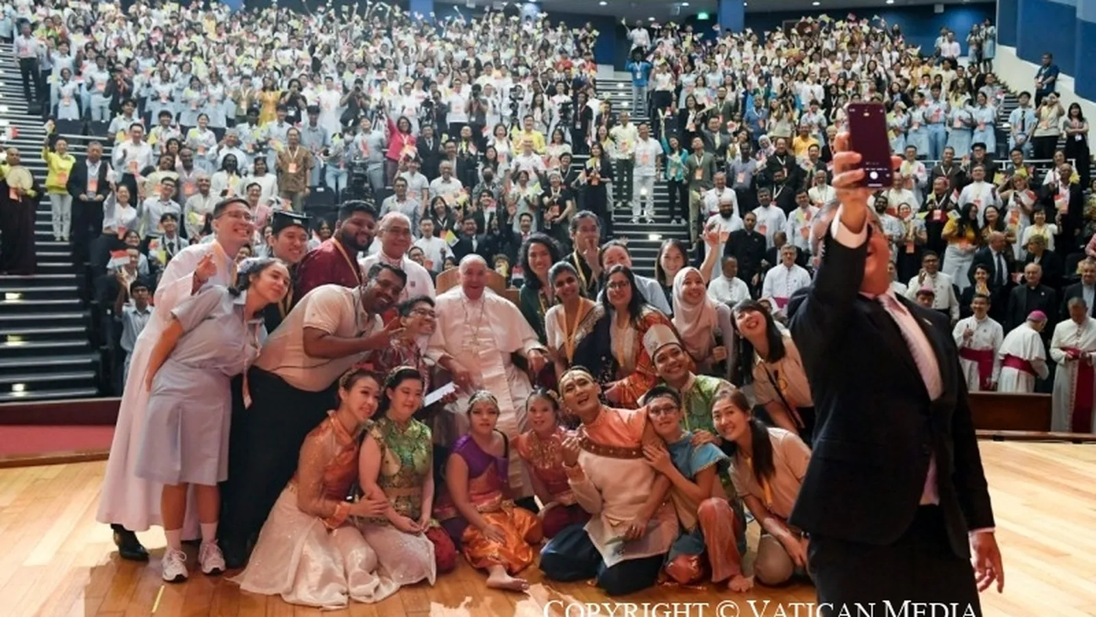 Tras este acto, el Papa se trasladó al encuentro con los jóvenes, el último gran y emotivo acto de Francisco en Singapur, en el que Francisco se entretuvo mucho más de lo esperado, y donde pronunció un discurso 'a braccio', en el que pidió a los chicos y chicas, pertenecientes a distintas tradiciones religiosas, que "salgan de sus zonas de confort". "Sean valientes y no tengan miedo de equivocarse", señaló, lamentando "la dictadura del miedo".
