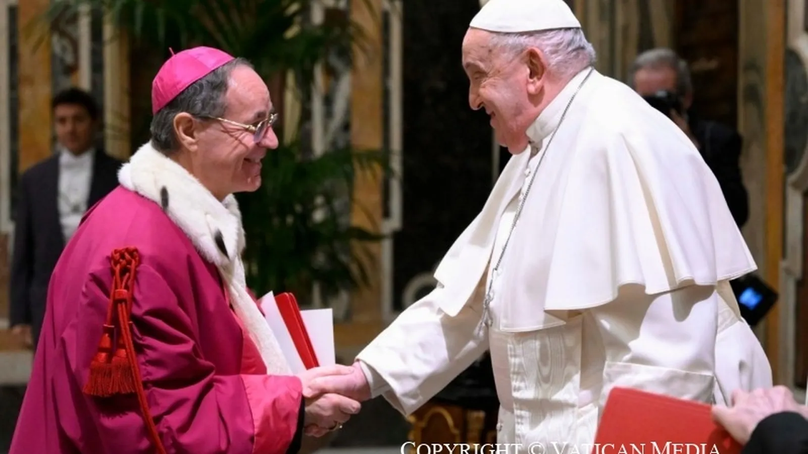 «Queridas hermanas, queridos hermanos, la Iglesia les confía una tarea de gran responsabilidad, pero aún más de gran belleza: ayudar a purificar y restaurar las relaciones interpersonales. El contexto jubilar en el que nos encontramos llena esta tarea de esperanza, una esperanza que no defrauda. Invoco sobre todos ustedes, peregrinos de la esperanza, la gracia de una conversión gozosa y la luz para acompañar a los fieles hacia Cristo, que es el Juez manso y misericordioso»