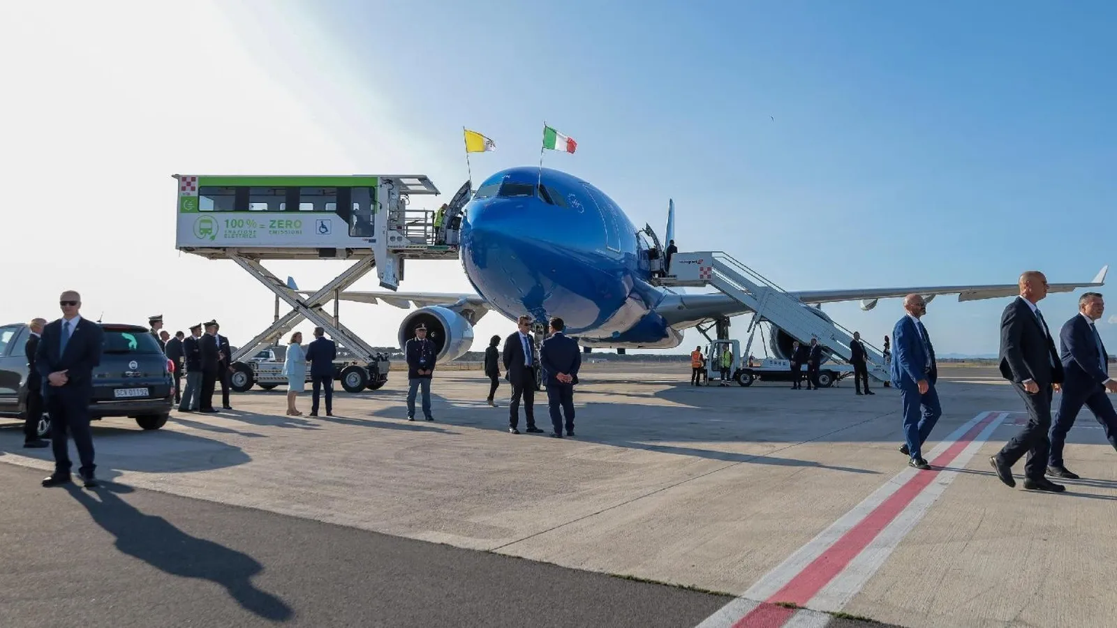 El vuelo aterrizó a las 16,01 en Fiumicino; Francisco envió sus telegramas