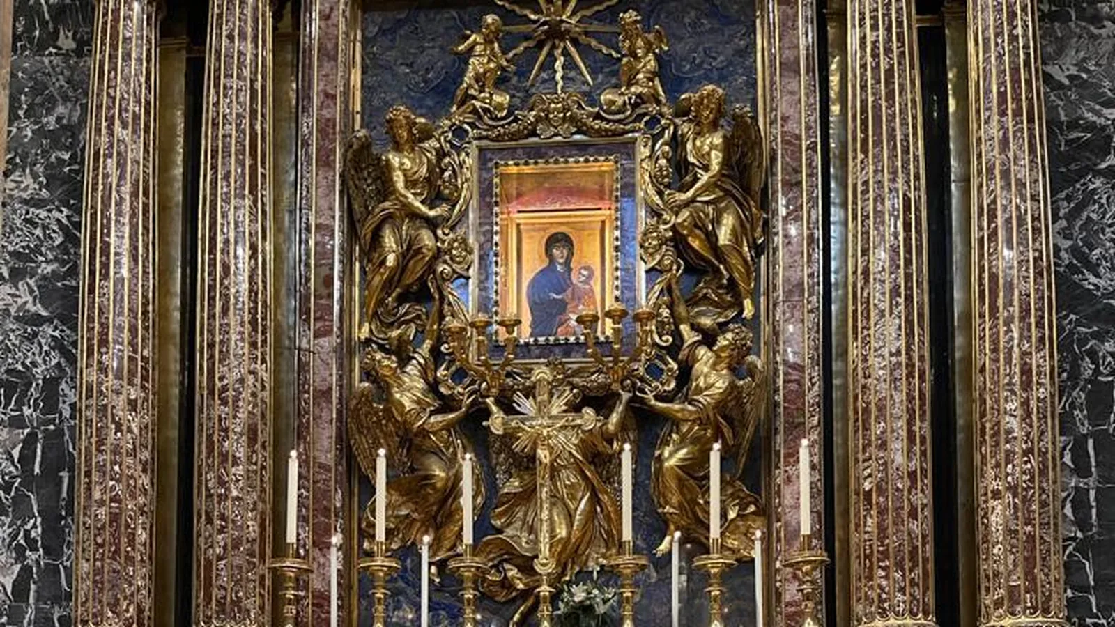 El Pontífice tiene como costumbre rezar ante este antiguo ícono mariano con la advocación de la Salus Populi Romani (Protectora del pueblo romano) antes de iniciar y después de concluir sus viajes internacionales.