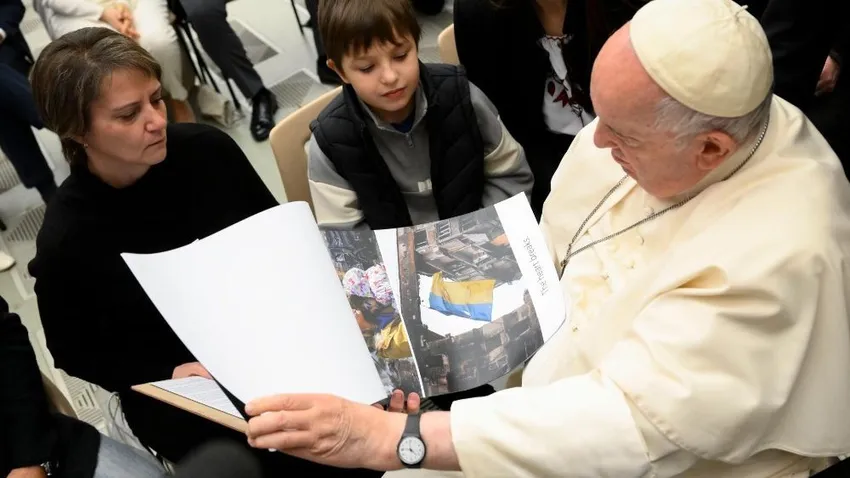 (Vatican News).- Ahí están las aterradoras imágenes de los estragos de la guerra en el calendario para 2023 que Larissa y Sergheii, esposa e hijo de un prisionero de guerra ucraniano, entregaron esta mañana al Papa Francisco. Son imágenes de denuncia y dolor. Pero, en cierto modo, también de esperanza: sí, para que 2023 sea un año de paz para Ucrania. El Pontífice vio, una a una, las páginas del calendario que testimonian con crudeza la tragedia de la población de Mariupol, la ciudad mártir del sureste del país, sometida durante mucho tiempo a un penoso asedio ruso.
