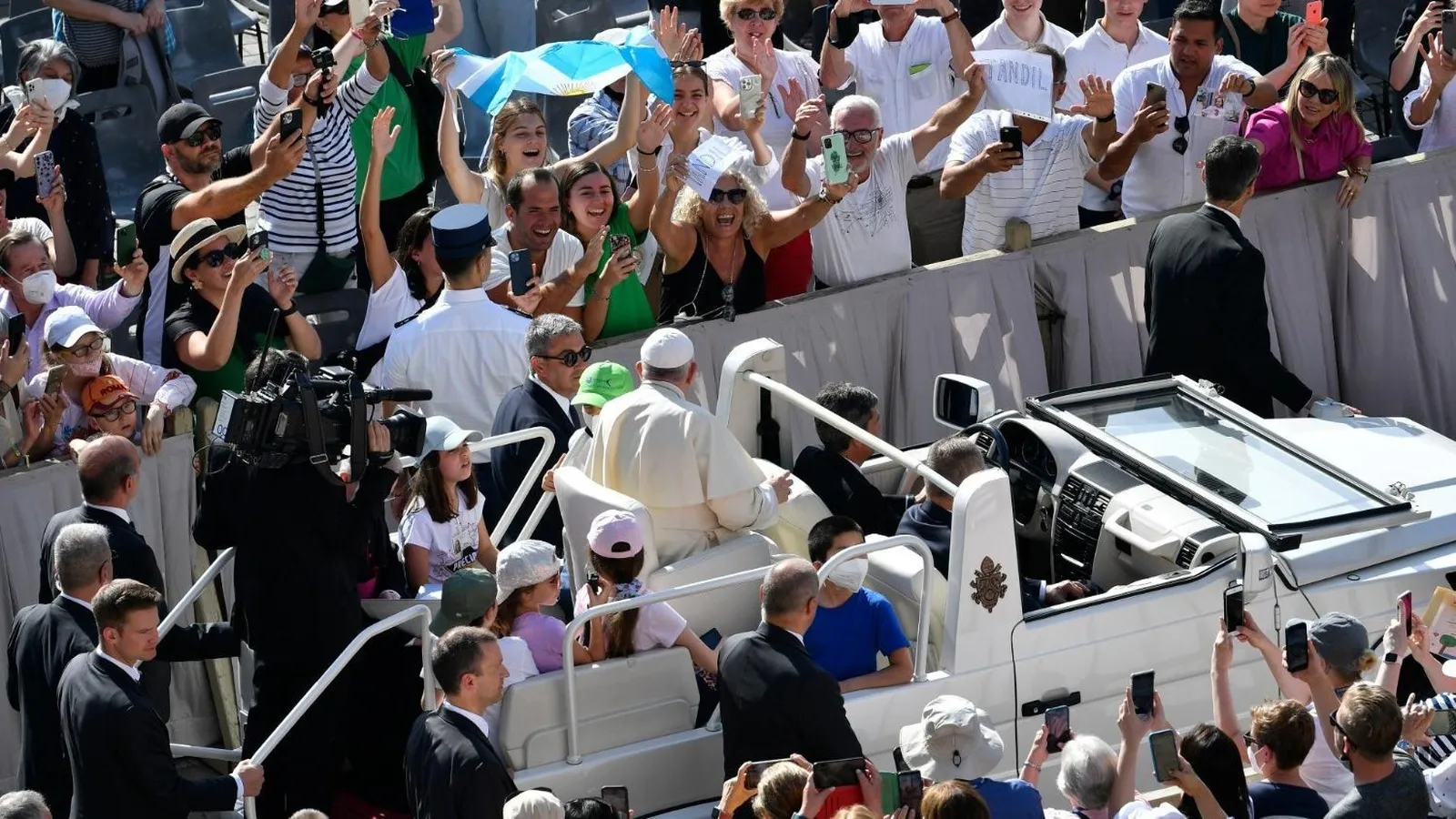 (Vatican News).- Las banderas argentinas que flameaban con orgullo en la plaza de San Pedro y un cartel que decía: “Viva la Patria” no pasaron desapercibidos ante la mirada atenta del Papa, que esta mañana, desde la explanada de la Basílica de San Pedro, celebró su acostumbrada audiencia general de los miércoles.