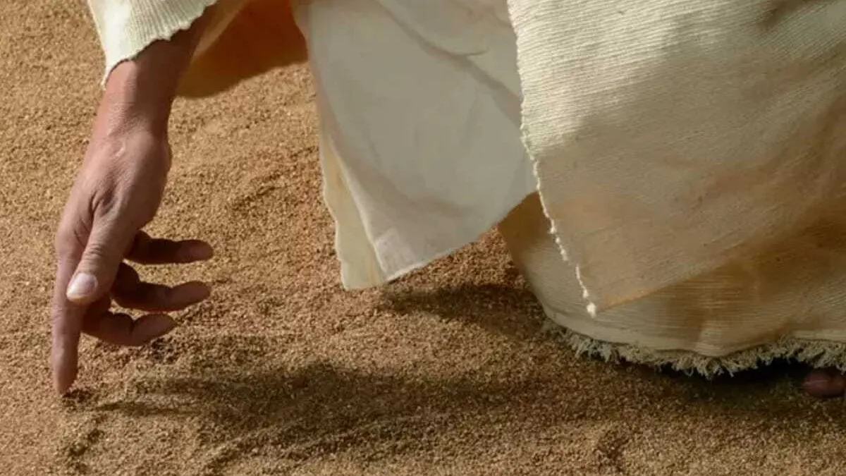En la dramática escena en que esta mujer es expuesta en medio del grupo, y delante del Maestro, para que sea juzgada y condenada, emerge con peso ‘el dedo de los hombres’, que señalan, juzgan y toman piedras dispuestas a dar muerte. El dedo de los hombres condena y se opone al querer de Dios que clama “Si quitas de en medio de ti el yugo, el dedo amenazador y la palabra condenatoria…” (Is 58:9). Es el verdadero ayuno y la metanoia: transformación de la mente y el corazón. Mientras el dedo de los fariseos señala a la mujer, el dedo de Jesús escribe en la tierra; diseña una obra renovadora. Mientras los hombres optan por la muerte, Jesús opta por un acto creador.