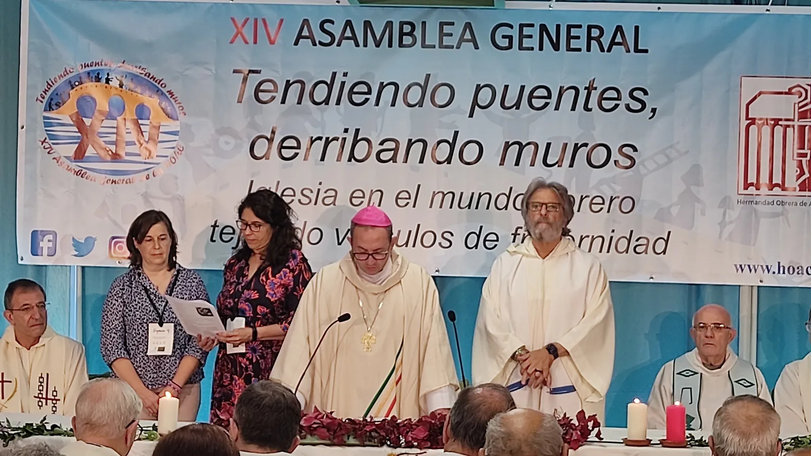 (Noticias Obreras).- En la tarde de ayer tuvo lugar la Eucaristía una de las más emotivas de la XIV Asamblea General de la HOAC en la que se recibía a los 3 nuevos responsables de este movimiento de trabajadoras y trabajadores cristianos, presidida por Abilio Martínez Varea, obispo de Osma-Soria y responsable de la Pastoral del Trabajo de la Iglesia española.