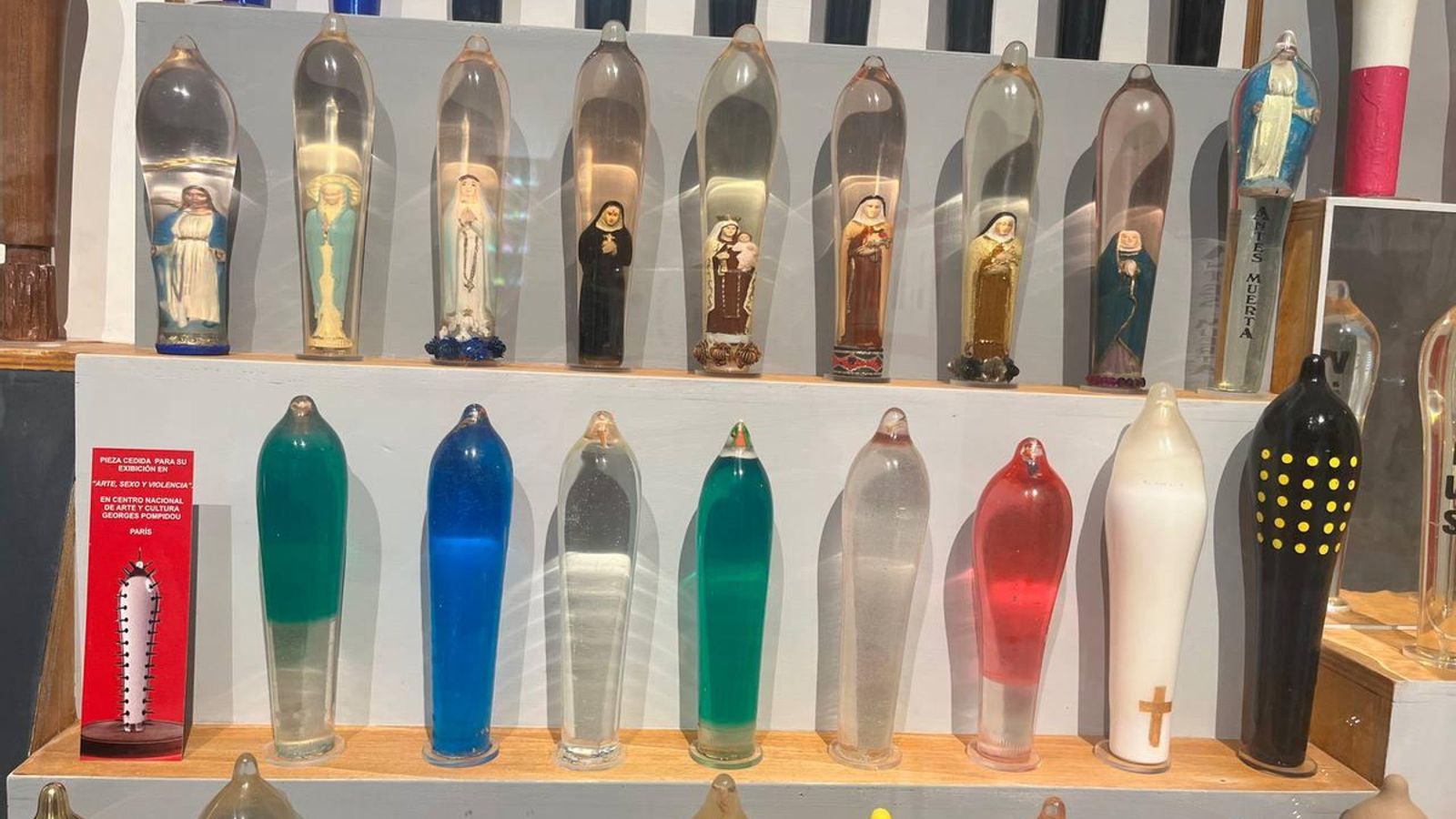 En la muestra, que acompaña al artista desde 1999 y nunca ha sido objeto de debate, se pueden ver imágenes religiosas contenidas dentro de preservativos de cristal con los que el autor quiere expresar el modo en que la Iglesia Católica ha impuesto a lo largo de la Historia sobre las mujeres la obligación de preservarse vírgenes hasta el matrimonio. “Llevo años trabajando con el preservativo y la idea surge a raíz del impacto del sida en los años 80 y el contagio de la enfermedad como estigma mundial, sobre todo en los países más pobres”, explica Luzardo.