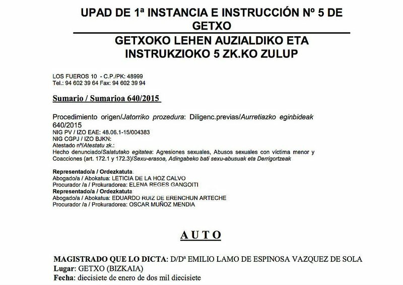 Los presuntos abusos sexuales se cometieron en los cursos 2008-09 y 2009-10, cuando el niño cursaba primero y segundo de Enseñanza Secundaria y tenía 12-13 años. La familia decidió no llevar el caso a los tribunales hasta que el estado anímico del joven le permitiese afrontar un proceso legal, y de esa manera esperó hasta junio del año pasado para presentar una querella en un juzgado de Getxo, cuando el chico ya era mayor de edad.
