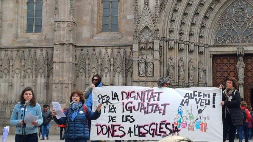 Alcem la Ve denunció este domingo 2 de marzo y por sexto año consecutivo ante la catedral de Barcelona la discriminación e invisibilización que sufren las mujeres en la Iglesia católica y reclamó una institución igualitaria e inclusiva
