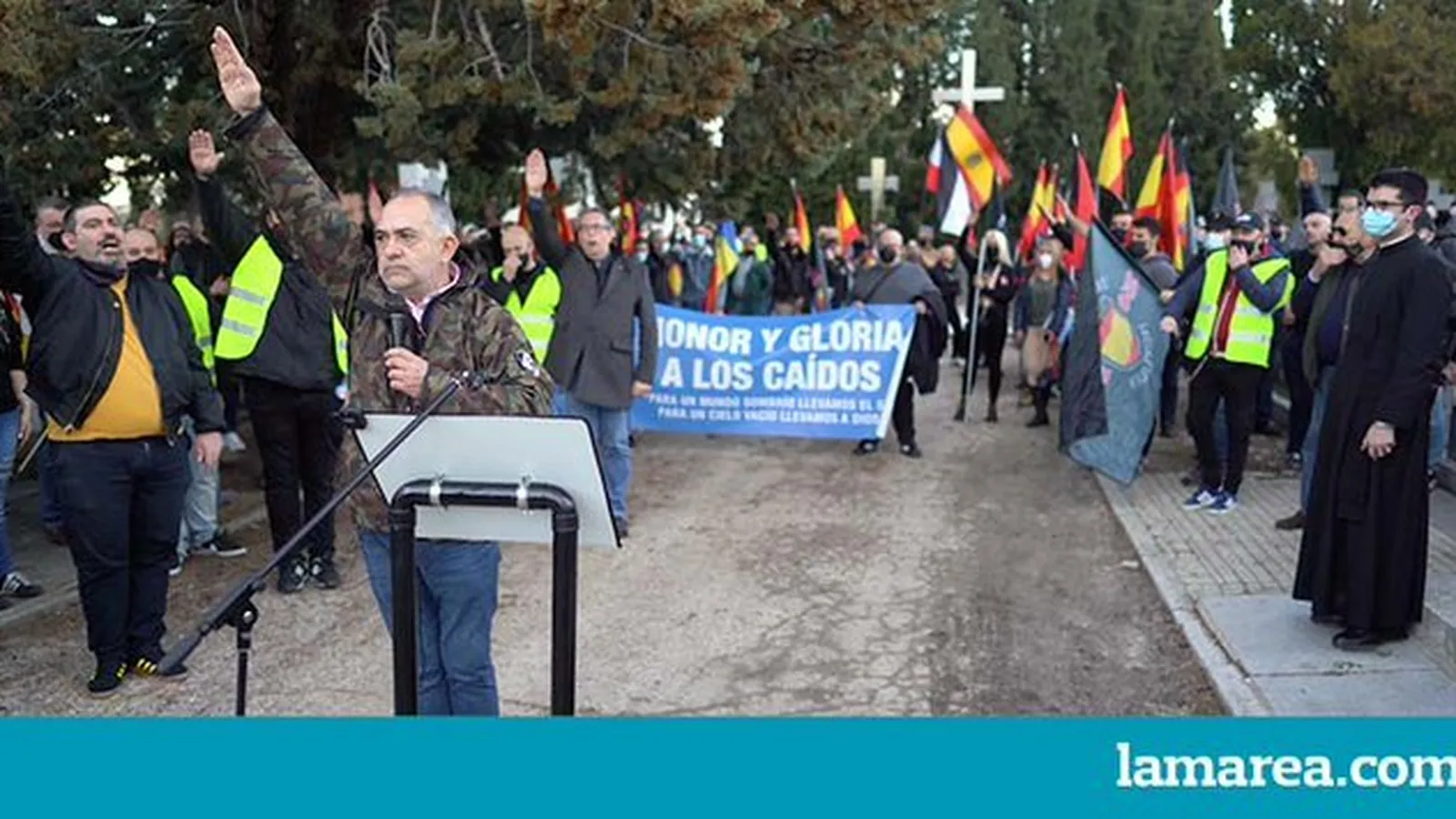 La manifestación culminó en el monolito del cementerio de la Almudena que recuerda a la División Azul. Allí, los asistentes hicieron el saludo nazi y entonaron canciones de temática fascista.