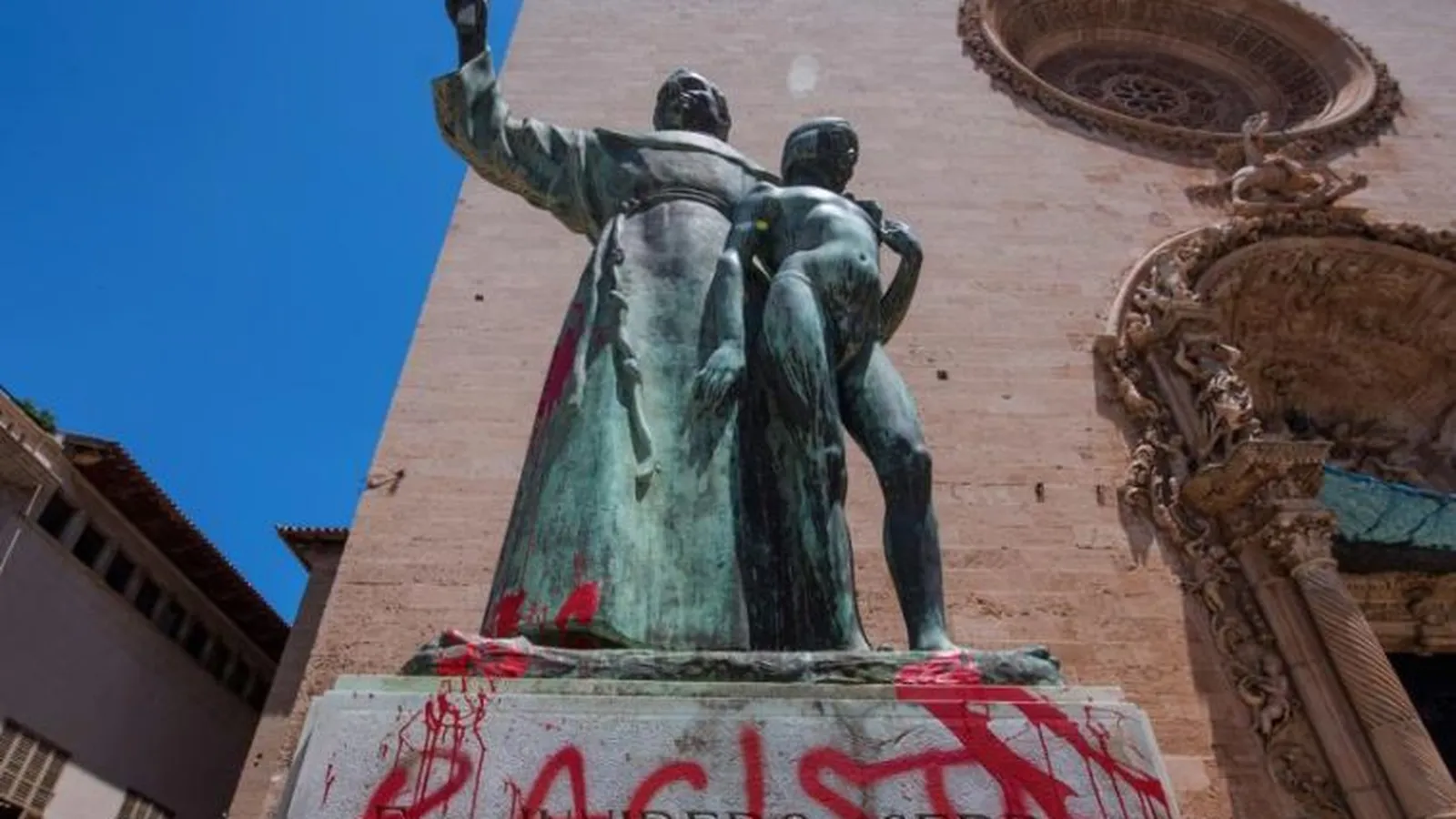La estatua del misionero Fray Junípero Serra, situada en Palma de Mallorca, ha amanecido con pintadas y con la palabra "racista". Esto se ha producido después de que la concejal de Podemos en el Ayuntamiento, Sonia Vivas, animara en las redes a que fuera derribada "pacíficamente".