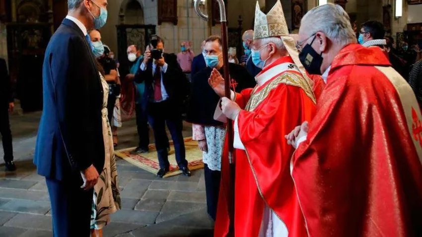 "Acollo a vosa ofrenda, Maxestade, encomendando á intercesión do Apóstolo Santiago a todos os pobos de España, para que manteñamos unha convivencia fraterna non esquecendo as nosas raíces. Que Deus, co teu patrocinio, Santo Apóstolo, bendiga ás súas Maxestades e a toda a Familia Real, sempre sensibles a toda realidade que afecta ao noso pobo. Deus nos axuda e tamén o Apóstolo Santiago". El arzobispo de Santiago, Julián Barrio, clamó por la "convivencia fraterna" entre los españoles durante su homilía con motivo de la fiesta mayor de Santiago Apóstol, patrón de España.