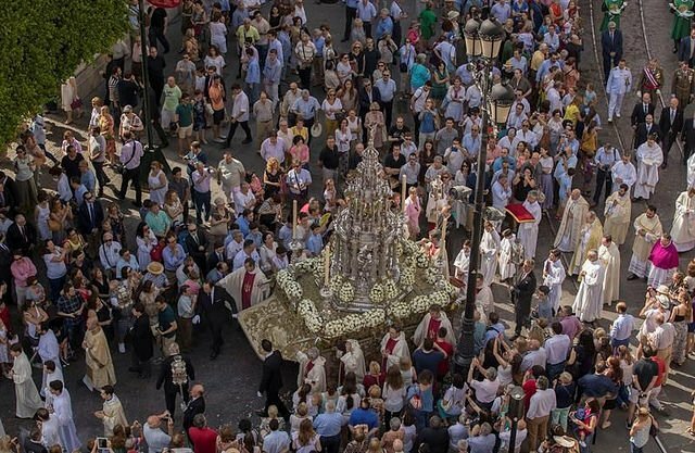 Toda la mañana del día queda ocupada por esta celebración de aire barroco que también incluye un breve desfile militar y el tradicional baile de los niños seises ante la Custodia.