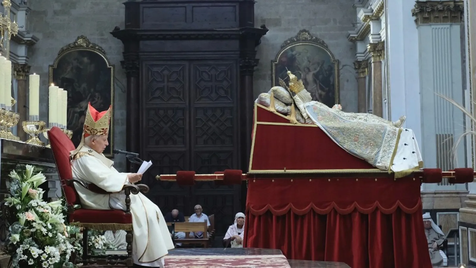 El cardenal arzobispo de Valencia, Antonio Cañizares, ha presidido esta mañana en la Catedral la misa en la solemnidad litúrgica de la Asunción de la Virgen, fiesta que este año ha recuperado todos sus actos tradicionales, como la procesión de entrada con la imagen de la Dormición de la Virgen, antes de la eucaristía, y la vespertina por el entorno de la Seo, suspendidas en 2020 y 2021 a causa de la pandemia.