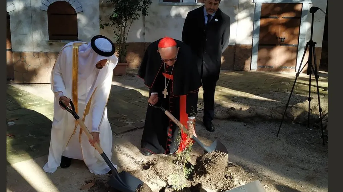 Cardenal Omella y Sr. Mohammad AlShamsi plantando un Ghaf, el árbol simbolo de la tolerancia