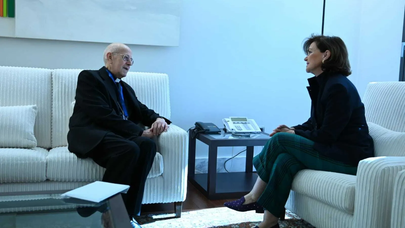 La primera reunión entre la Conferencia Episcopal y el Gobierno fue, precisamente, una despedida. La vicepresidenta primera del Gobierno y máxima responsable de las relaciones con la Iglesia, Carmen Calvo, recibió esta mañana en su despacho de Moncloa al cardenal Ricardo Blázquez, presidente saliente de la CEE, y que este martes tendrá sucesor.