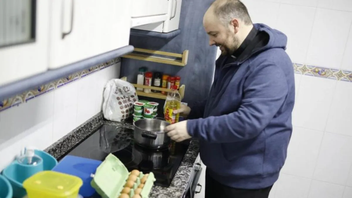 Su parroquia está formada mayoritariamente por ancianos que viven solos y tienen a los hijos lejos, un colectivo muy vulnerable al que este sacerdote de 39 años atiende y cuida a diario