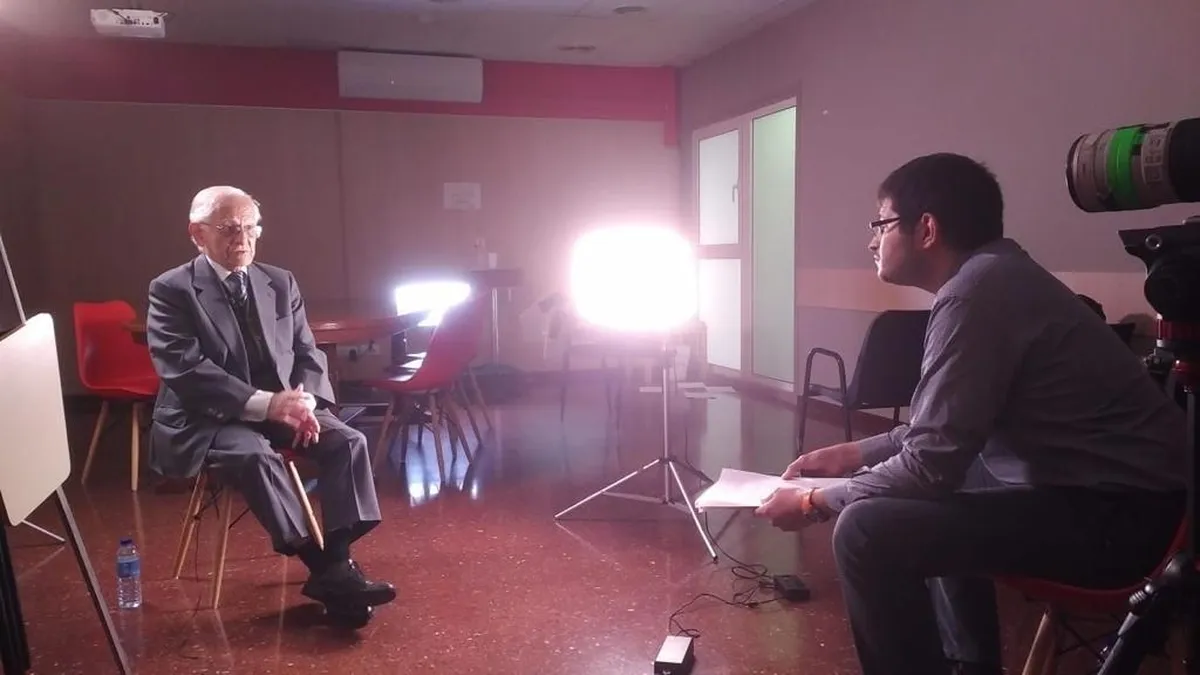 David Casals durante el rodaje, entrevistando a Armand Urrútia.