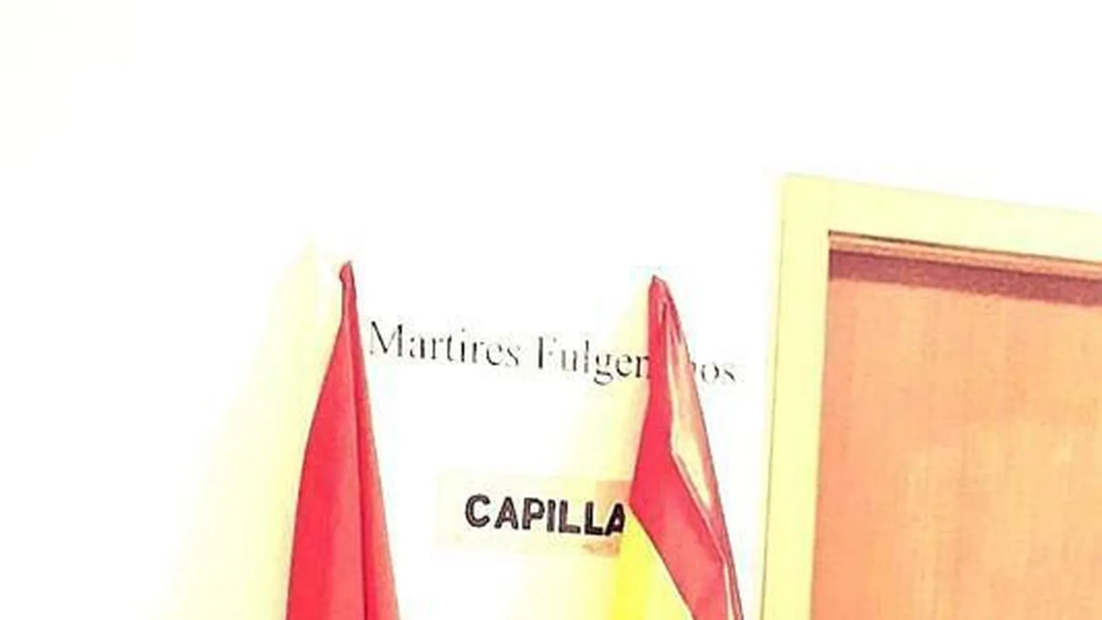 En la instantánea se ve claramente que las banderas están en la puerta de la capilla de “Mártires fulgentinos', los cuatro mártires de la guerra civil, que eran seminaristas en el seminario de San Fulgencio.