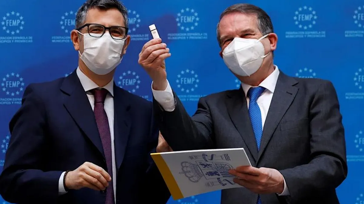 El ministro de la Presidencia, Félix Bolaños, ha entregado este jueves al presidente de la Federación Española de Municipios y Provincias (FEMP), Abel Caballero, un listado de mil bienes indebidamente inmatriculados