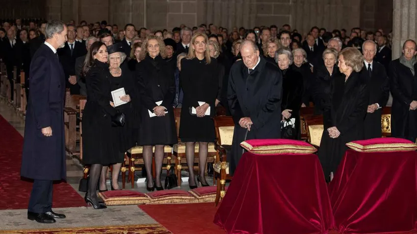 Felipe y Letizia asisten, junto a Juan Carlos y Sofía, al funeral por Pilar de Borbón