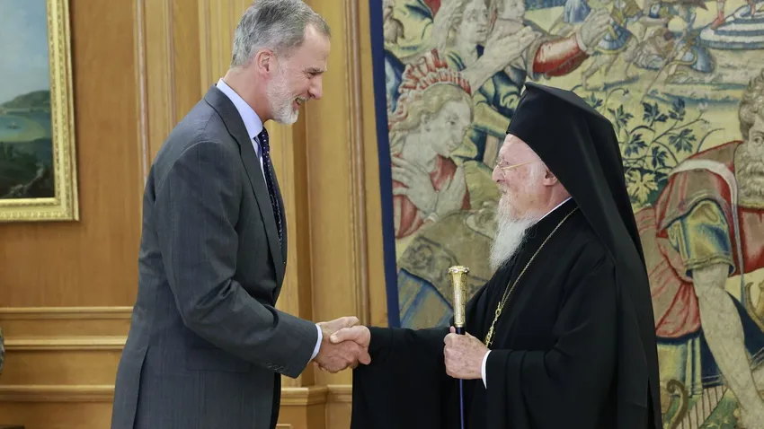El encuentro ha tenido lugar en el Palacio de la Zarzuela, donde el rey ha saludado a Bartolomé I en el Salón de Audiencias antes de mantener la conversación en su despacho.