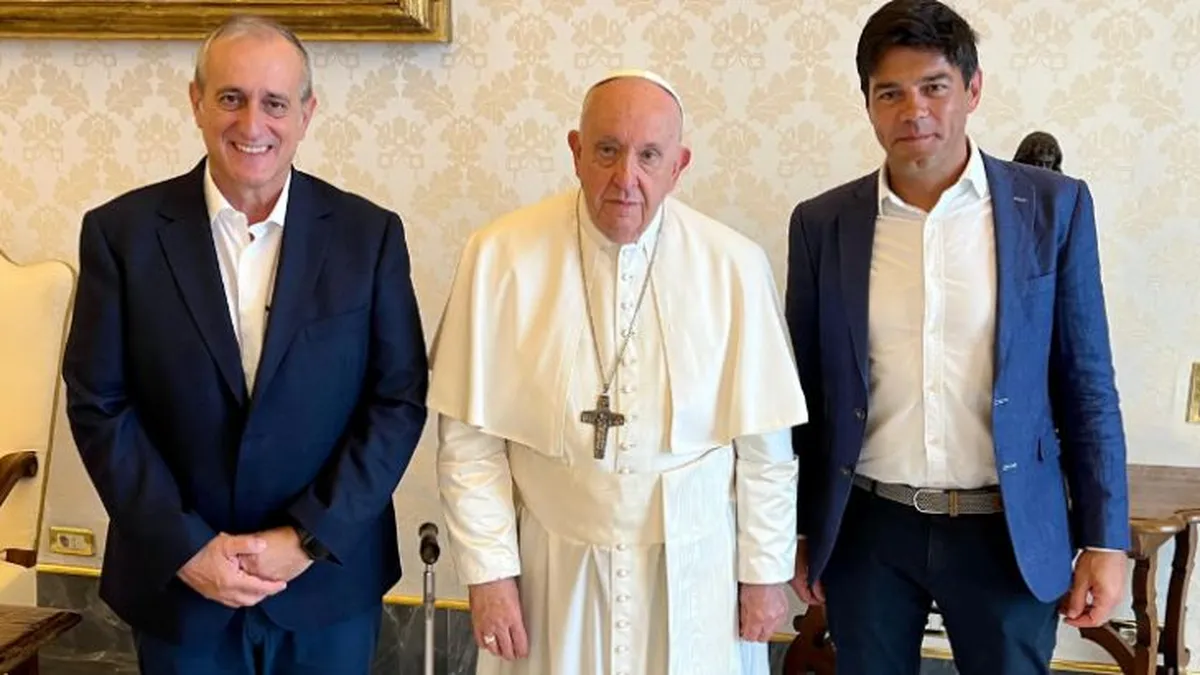 Joaquín Pérez y Antonio Amate obsequiaron al papa Francisco con una cuidada edición personalizada de la Carta Fundacional de USO. Además, el pontífice dedicó otro ejemplar para la colección del sindicato:
