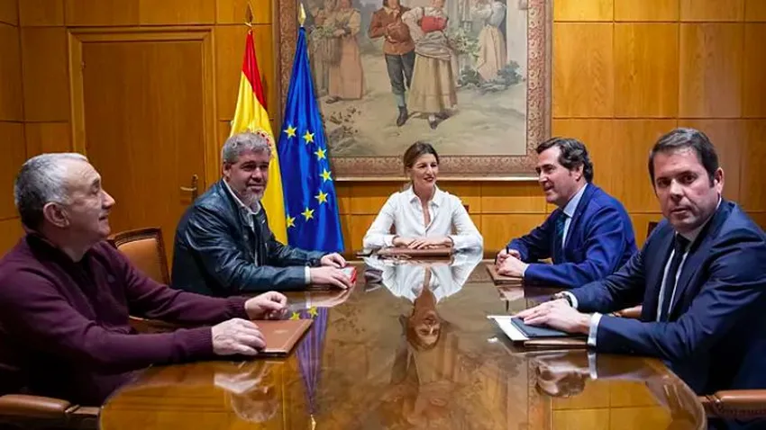 Yolanda Díaz y representantes de sindicatos y CEOE, juntos