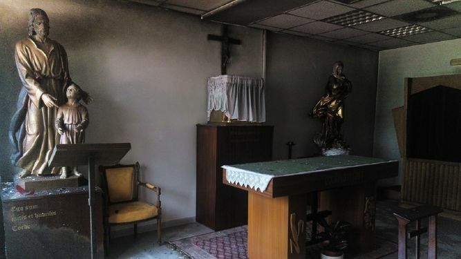 La Policía, que ya investiga el ataque, confirmó que recibió una llamada a las siete de esta mañana. Aunque la capilla no ha resultado incendiada, sí se han producido daños en las paredes, el suelo, una puerta, una ventana y una imagen de San José.