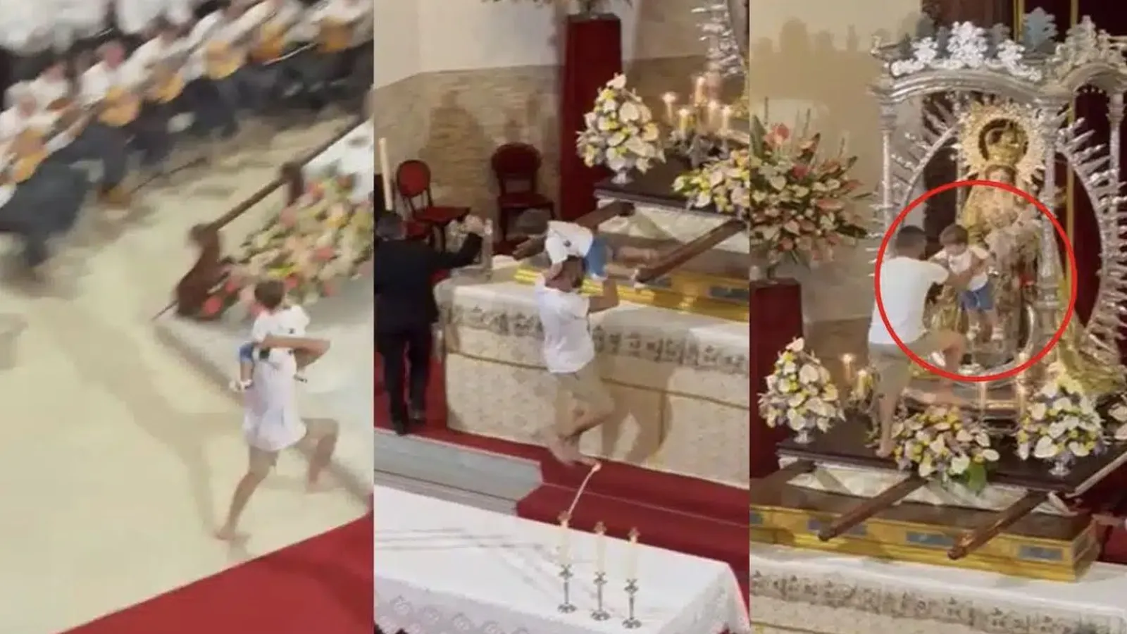 En ellas, se puede ver como un hombre irrumpe en la iglesia a toda velocidad con su hijo subido a hombros. La carrera descalza del protagonista ante la estupefacta mirada de los congregados tiene un claro objetivo: colocar al pequeño junto a la Virgen del Carmen.