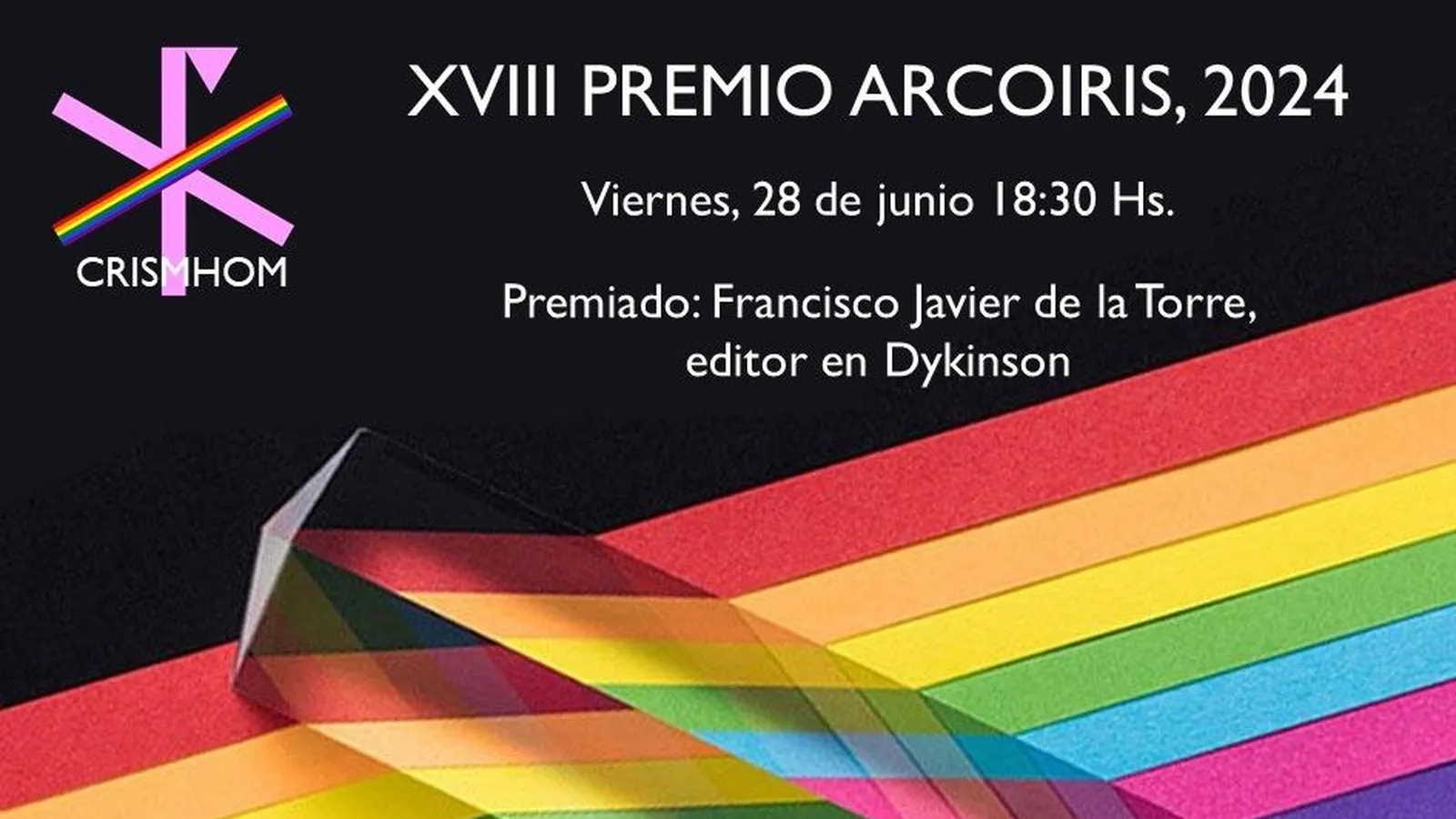 Crismhom celebrará la entrega de su XVIII Premio Arcoíris. Este año el premio ha recaído en Javier de la Torre, profesor de Teología Moral en la Universidad Pontificia de Comillas y editor en Dykinson de varios libros colectivos sobre diversidad sexual y cristianismo.