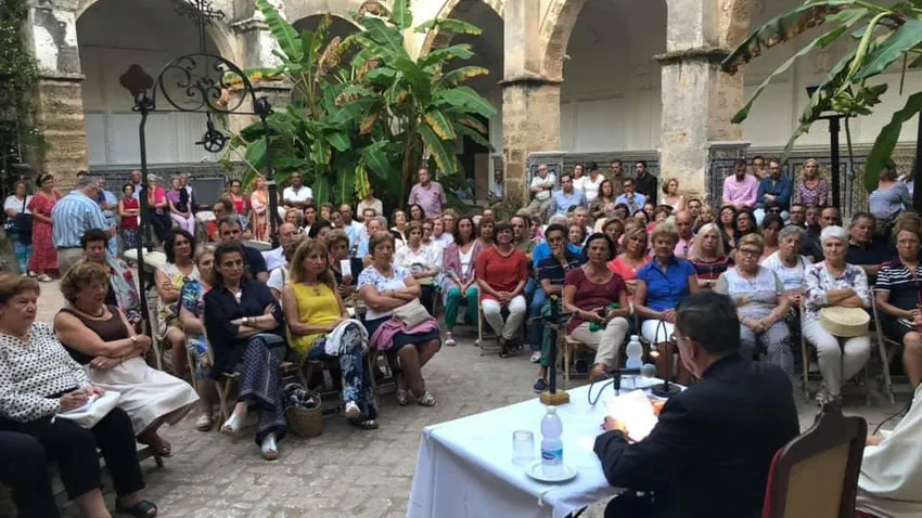 Aprovechando su estancia veraniega, entre nosotros, quiso compartir su experiencia y saber en torno a los temas del diálogo interreligioso, como proceso eclesial que hunde sus raíces en el concilio Vaticano, y continúa avanzando, fiel al espíritu conciliar, en los últimos papados y con interés cuidado en este pontificado del papa Francisco. Asistieron los religiosos franciscanos que rigen el monasterio, así como muchos residentes sacerdotes, religiosos, laicos, y el público en general que asistió numerosamente, llenando el claustro, como respuesta a la convocatoria realizada desde la comunidad franciscana a todos los fieles.