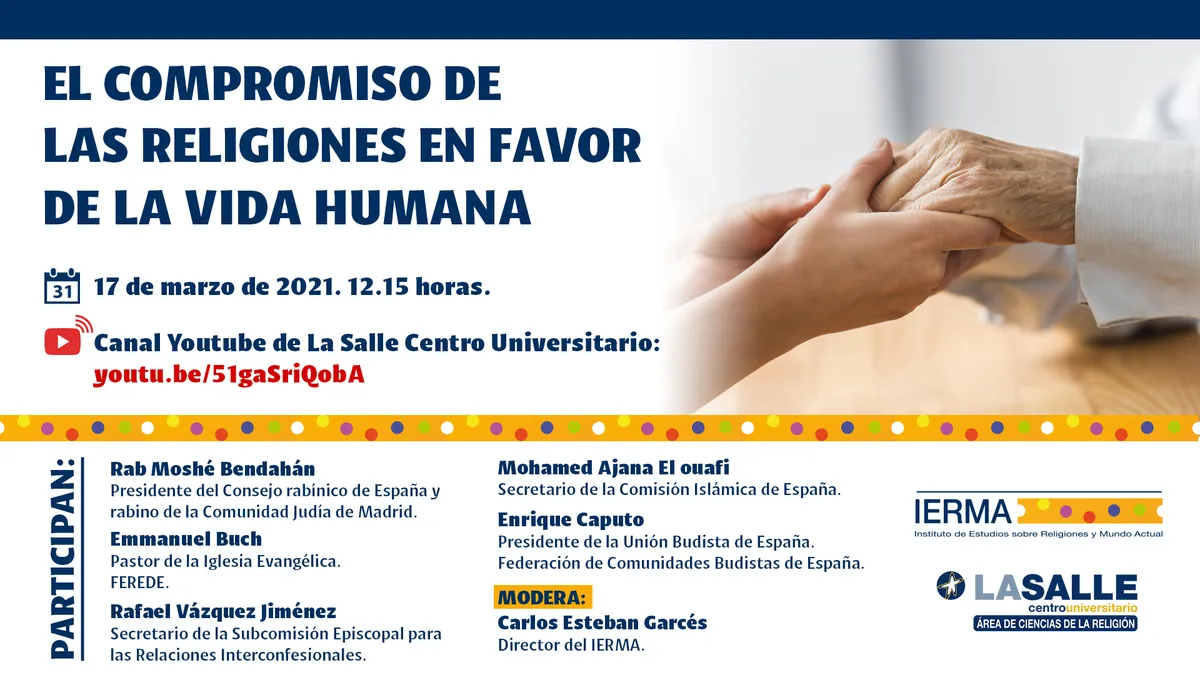 Las diversas tradiciones religiosas, todas ellas comprometidas en el cuidado de la vida, estamos llamadas a compartir nuestra pasión por la vida de todos y todas, sin exclusión alguna. Por ello, desde el IERMA (Instituto de estudios sobre Religiones y Mundo Actual) de La Salle Campus Madrid, hemos convocado esta nueva oportunidad para visibilizar nuestro compromiso en favor de la vida.
