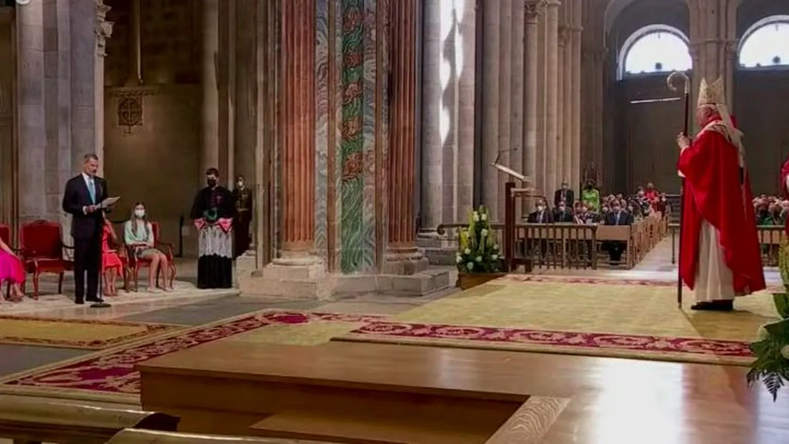 Tanto el arzobispo de Santiago, Julián Barrio, como el nuncio, el cardenal Rouco Varela y todas las autoridades llevaban mascarillas en el interior. También los Reyes que, por tercer año consecutivo, procedieron a la Ofrenda al Apóstol, una tradición que hunde sus raíces desde hace 379 años. Hoy, Don Felipe, Doña Letizia, la princesa Leonor y la infanta Sofía.