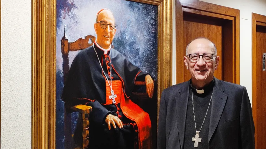 El cardenal Omella, ante su retrato en la 'galería' de presidentes