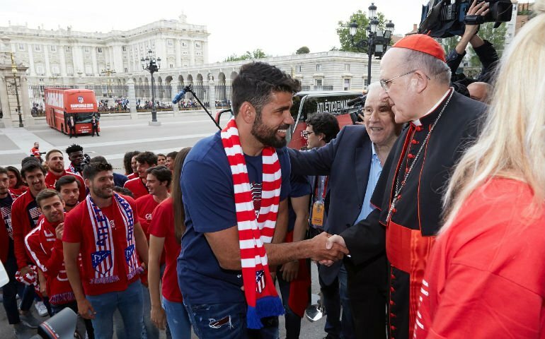 El arzobispo de Madrid aludió al gran número de familias que habían salido a la calle a celebrar estos títulos, y recordó a las jugadoras y jugadores del Atlético que son «un ejemplo» en el que se miran los niños y jóvenes.