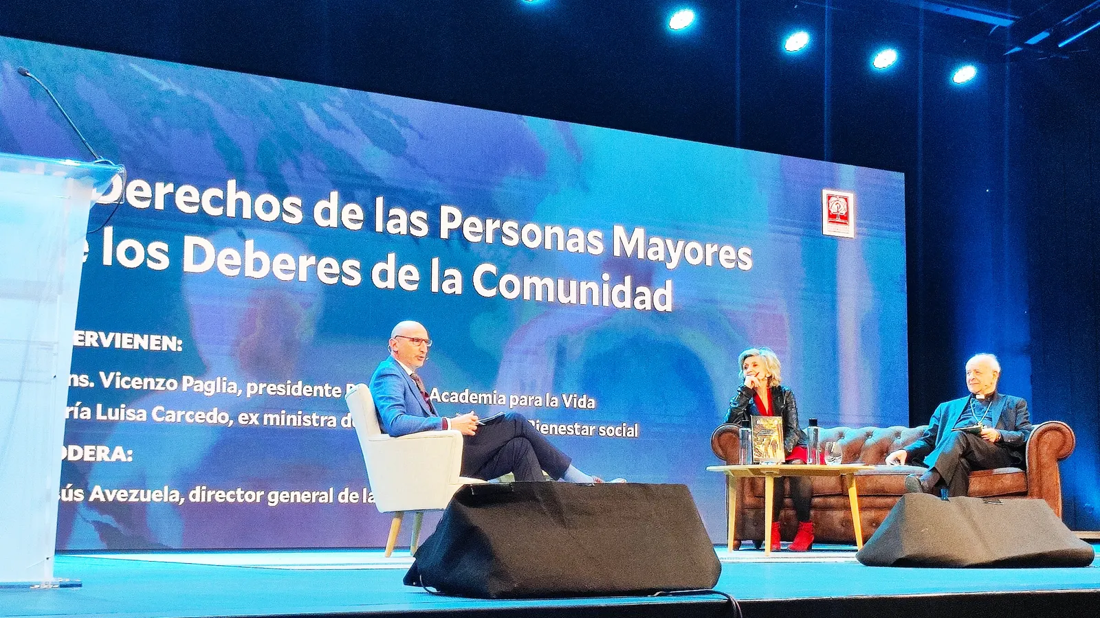 "La iglesia tiene una pastoral para los jóvenes, pero para los ancianos, nada, nada", enfatizó el presidente de la Pontificia Academia de la Vida ante el cardenal de Madrid, José Cobo, el obispo de Gatefe, Ginés García Beltrán y el Padre Ángel, que le escuchaban desde la primera fila