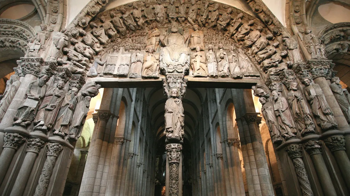 La Catedral de Santiago es una joya del patrimonio mundial de la humanidad. En ella destaca especialmente el Pórtico de la Gloria, obra cumbre del arte románico universal, que ha sido recientemente restaurado. El genio inigualable de Mateo, el maestro Mateo, logró en él una audacia insuperable: expresar en piedra una teología bíblica y especulativa, en la que las figuras clave de los profetas del Antiguo Testamento y los apóstoles del Nuevo Testamento, sustentan un mensaje escatológico de salvación, en el que los ancianos del Apocalipsis rodean a un Cristo glorioso en el Juicio Final.