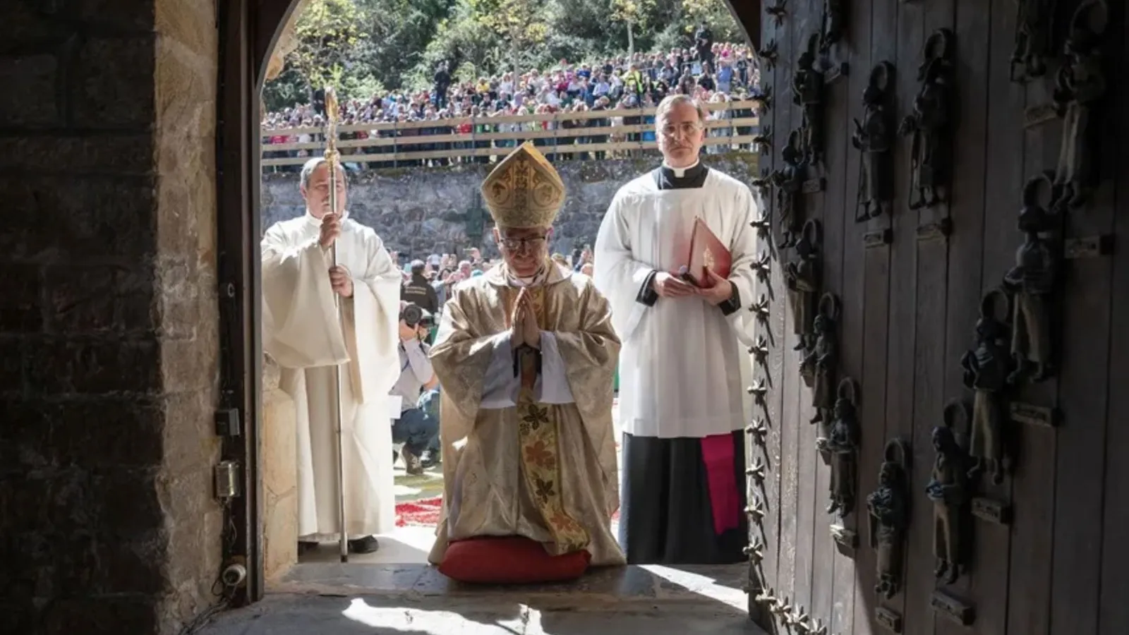 La apertura de la Puerta del Perdón del Monasterio de Santo Toribio de Liébana, en Cantanbria, ha abierto el Año Jubilar Lebaniego ante más de dos mil peregrinos, a los que el obispo de Santander, Manuel Sánchez Monge, ha pedido que transiten por la "senda de la evangelización" para que les deje "huella".